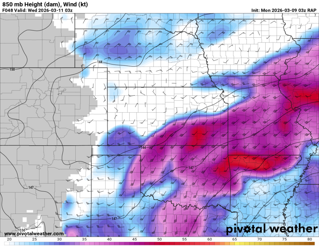 Looking out 2 full days, the evening RAP run on Saturday night March 7th (03Z on March 8) was showing the possibility of supercells in Central and Southern Oklahoma. With the main jet stream staying north, a cut off low over Northern Mexico and ejecting into Texas/Oklahoma in the late afternoon and evening hours. With the success I had with cutoff lows in 2012, I couldn’t ignore this system in the Southern Plains.
