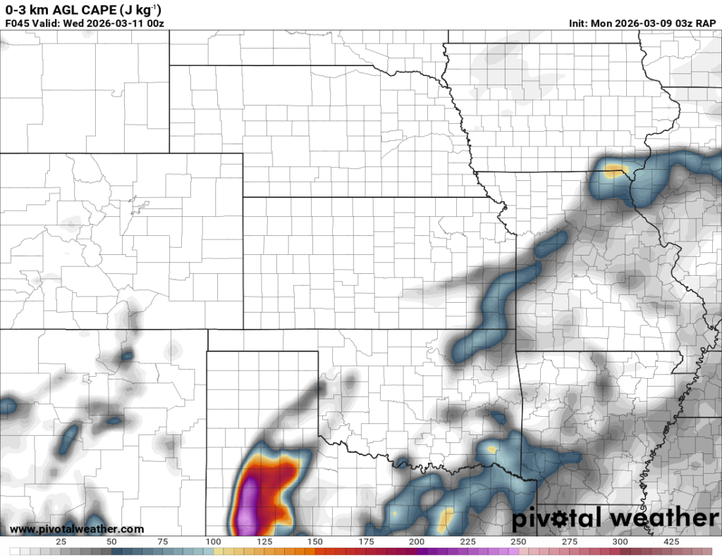 Running through the RAP, it had some weird chunk out of moisture/instability in Central Oklahoma. It was assuming there would be convection ongoing that would clear the warm sector. If that’s the case, this would be more in Eastern Oklahoma.