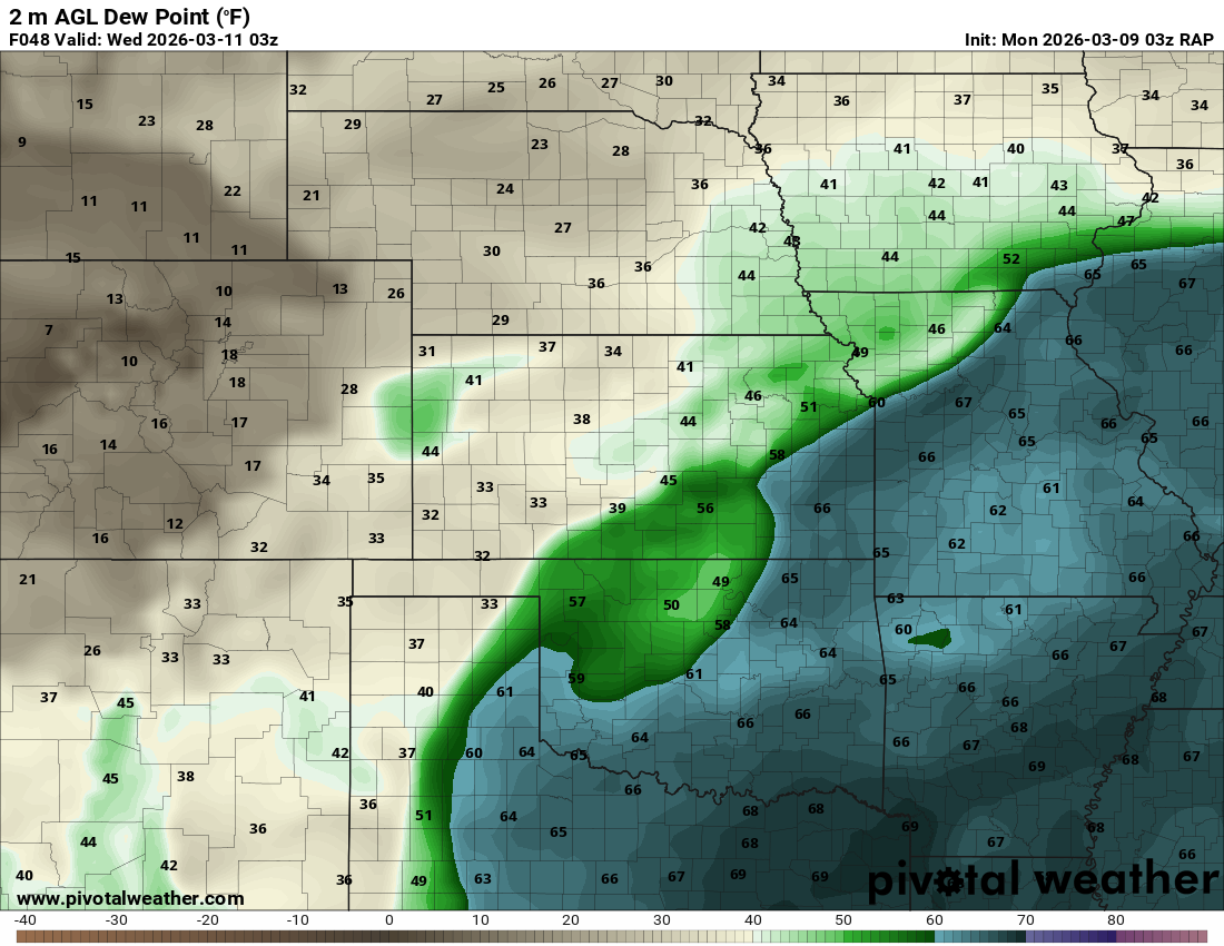 Moisture was very high for March. Dewpoints in the mid 60s were in place at 8am across the eastern 1/2 of Oklahoma.