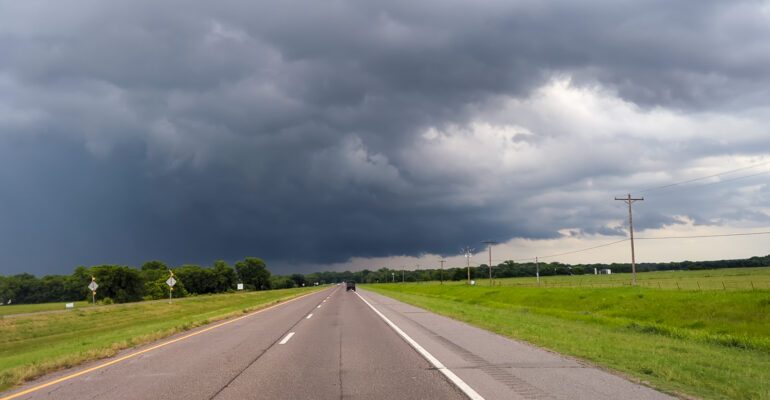 Beautifully sculpted supercell slowly travels across the Oklahoma landscape near Weatherford